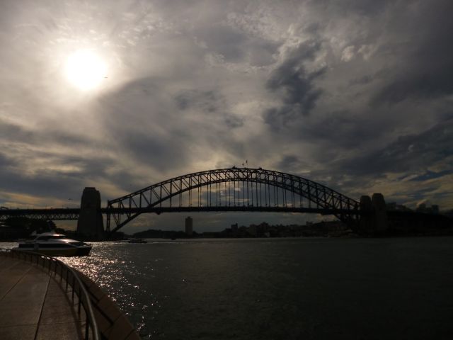 Nach der Oper ist die Harbour Bridge das zweite architektonische Wahrzeichen der Stadt und wird von den Sydneysider (so bezeichnet man tatsächlich die Bewohner Sydneys) auch liebevoll “Kleiderbügel” genannt. Die Brücke wurde 1932 nach acht Jahren Bauzeit eröffnet und ist mit einer Breite von knapp 50 Metern und einer Länge von 508 Metern eine der größten Brücken Australiens. Da der Hafen durch die Brücke nicht blockiert werden durfte und auch großen Schiffen Platz bieten sollte, liegt die Fahrbahn in einer mittleren Höhe (je nach Ebbe/Flut) von 53 Metern. Der Scheitel des Bogens kommt gar auf 134 Meter. Während des Baus gab es zahlreiche Unfälle. 16 Männer ließen ihr Leben.