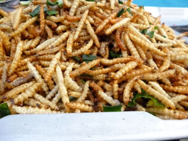 Götz kaufte prompt eine Handvoll des knusprigen Snacks. Eine erlesene Mischung aus frittierten Bambusmaden, Grillen und Seidenraupen. Leicht gesalzen….hmmm lecker. Aber mal im Ernst. Außer „Survival“ Götz hat keiner auch nur einen Finger für das Ungeziefer krumm gemacht. Kerstin meinte nur:“Ich esse sowas auch, aber erst kurz vor dem Hungertod!“ Gleichwohl sind fritierte Insekten in Thailand nicht nur ein Touristen-Gag. Wir haben den Stand eine zeitlang beobachtet und mehrere Thailänder gesehen, die sich für das Krabbelgetier zum Knabbern entschieden. Frisch „gestärkt“ stürzten wir uns in Getümmel und arbeiteten uns durch den rastlosen Strom der Besuchern. Doch plötzlich, wie auf ein geheimes Kommando blieben alle wie angewuzelt stehen und waren mucksmäuschen still. Kein Klappern, kein Rascheln, keine wummernden Bässe aus CD-Shops. Nur eine einzige leise Melodie, war aus vereinzelten Lautsprechern zu hören. Eine ebenso unheimliche wie bizarre Stimmung erfasste uns. Und dann…ebenso plötzlich…wurde den Figuren wieder Leben eingehaucht. Der Chatuchak Market war wiedererwacht. Jeder ging seinem Tagwerk nach, als ob nichts geschehen wäre. Erst später haben wir richtig begriffen, was eigentlich passiert war. Punkt 18 Uhr (und auch