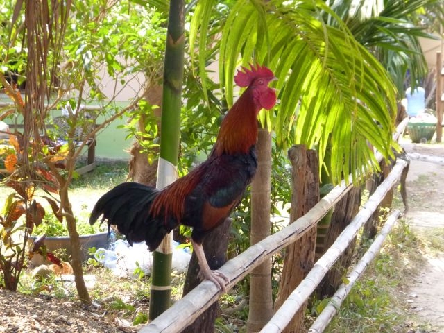 Das Essen wurde auf einer überdachten Terrasse serviert, auf der gelegentlich Hühner zwischen den Tischen umherspazierten und nach Essensresten Ausschau hielten. Doch die gefiederten Zweibeiner hatten wenig Glück, da die Hausherrin stets auf Sauberkeit achtete und öfter die Hühner verscheuchte.