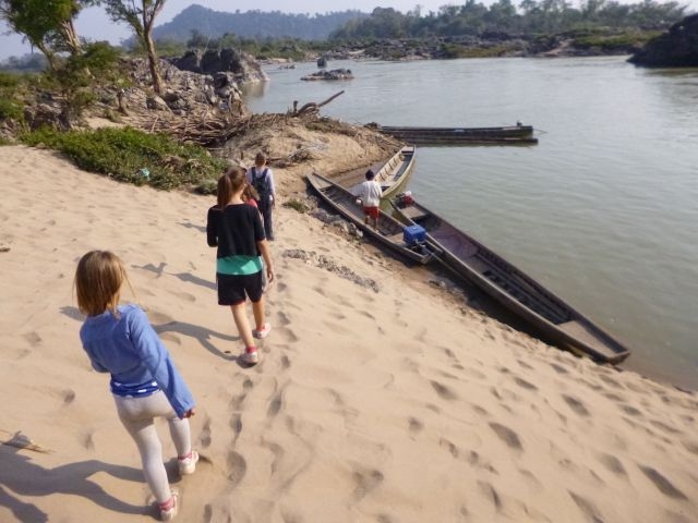 Malträtiert, benommen und in gewisser Weise froh noch die eigenen Beine spüren zu können, erreichten wir Ban Nakasang am Ufer des Mekongs. Von hier brachte uns ein Longboat nach Don Khon – eine der “4000 Inseln”. Der Name kommt nicht von ungefähr. Bereits wenn der Mekong in der Regenzeit einen hohen Pegel aufweist und in dieser Gegend bis auf eine Breite von 14 Kilometern (!) anschwillt, stemmen sich hunderte kleine und große Inseln den gewaltigen Fluten des zehntlängsten Flusses der Erde entgegen. In der Trockenzeit sinkt der Pegel wieder und täglich erheben sich neue Inseln in allen Größen aus ihrem nassen Grab. Dabei sind 4000 Inseln vermutlich sogar noch eine Untertreibung.