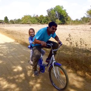 Wir liehen uns Fahrräder und fuhren vorbei an Reisfeldern und Wasserbüffeln Richtung Süden.