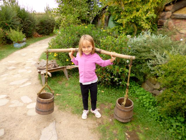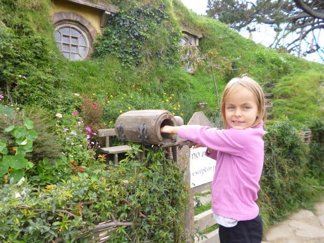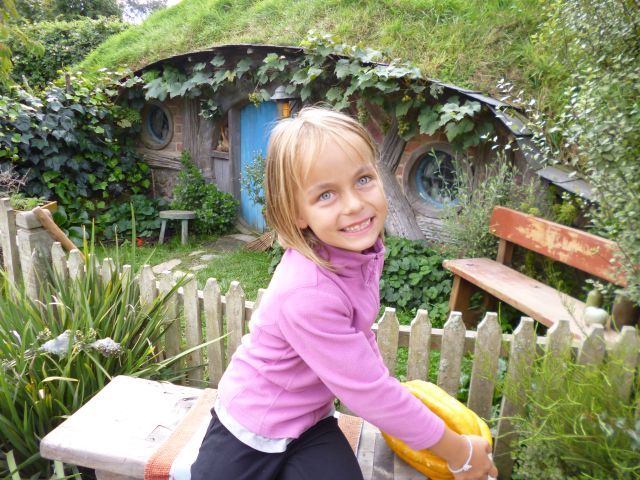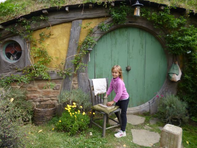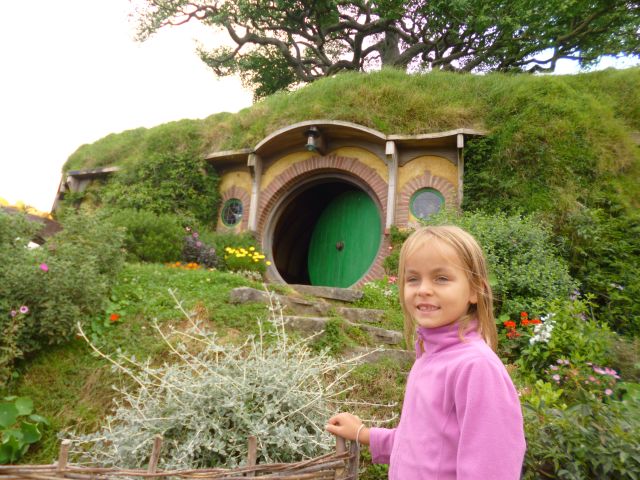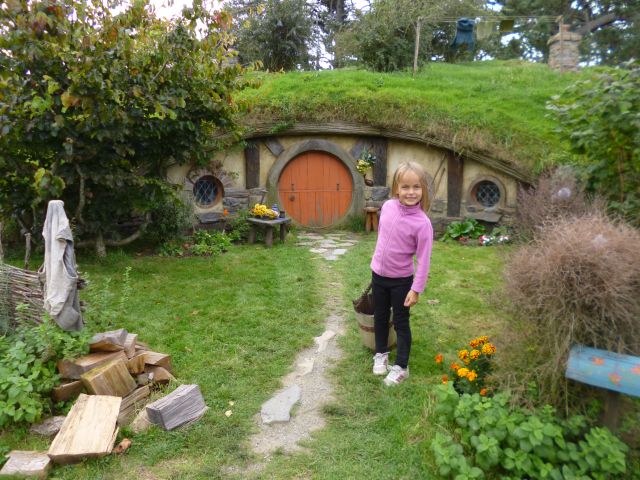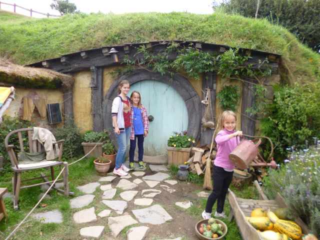Noch immer befanden wir uns auf den Spuren Frodos, dem Helden der „Herr der Ringe“-Trilogie. Glücklich, Saurons Reich mit heiler Haut entkommen zu sein, zog es uns ins beschauliche Auenland. Unser Ziel war das Hobbitdorf „Hobbiton“ (im Deutschen „Hobbingen“), zwischen Cambridge und Matamata. Götz hatte in den Wochen zuvor „Der kleine Hobbit“ als Gutenachtgeschichte vorgelesen. Die Kinder waren sichtlich gespannt auf Bilbo Beutlins Heimat.