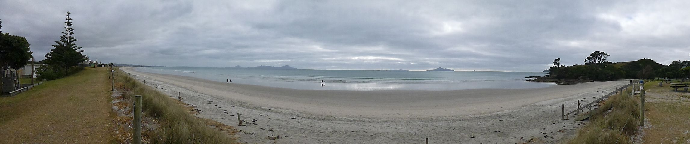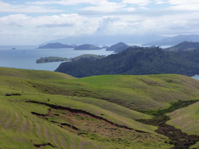 Wenig später gelangten wir wieder auf einen asphaltierten Straßenabschnitt und fuhren an der Westküste der Coromandel Halbinsel wieder ein Stück nach Süden. An klaren Tagen reicht hier der Blick über die Hauraki Bay bis zur Millionenmetropole Auckland. Wir erlagen aber auch bei bedecktem Himmel dem Zauber der Landschaft.