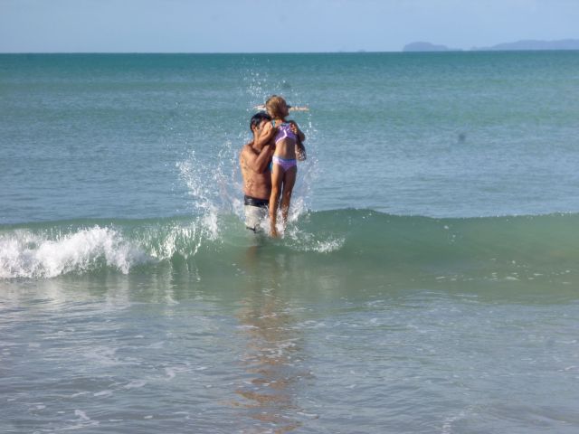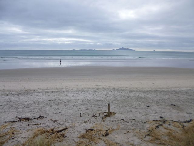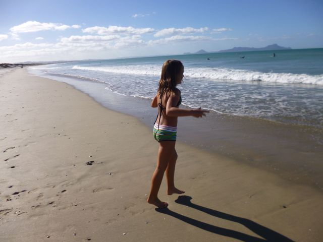 Nur eine Düne entfernt rollten die Wellen unablässig Richtung Strand. Das seichte Wasser (ohne Felsen), der saubere Strand und tolle Wellen lockten zahlreiche Surfer nach Waipu Cove. So konnten wir beim Baden eine Surf-Schule beim Unterricht beobachten. Elisa und Götz übten sich derweil im „Wellenhüpfen“. Für Elisa waren Wellen nach wie vor unheimlich und so sprang sie lieber an der Hand von Götz über die Wellenberge hinweg. Lilli war da schon deutlich mutiger uns stürzte sich in die Fluten. Unterdessen konnten Kerstin und Amelie dem kühlen Wasser bei herbstlichen Temperaturen wenig abgewinnen.