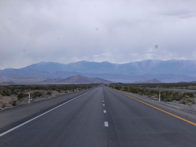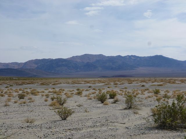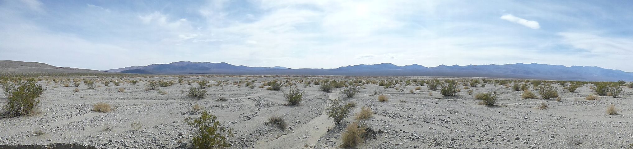 Einer voller Tank, reichlich Wasser und mit der Morgensonne im Rücken ging es auf den Weg. Unser neues Ziel war das 460 Kilometer entfernte Ridgecrest / Kalifornien. Wir wählten den langen Weg durch das Death Valley, entlang der Nord/Süd-Achse. Bereits wenige hundert Meter außerhalb von Las Vegas, wurde deutlich, warum das Spielerparadies als Wüstenmetropole bezeichnet wurde. Schlagartig wurde der Highway von einer Steppenlandschaft gesäumt. Zwischen den vereinzelten, halbvertrockneten Sträuchern müsste eigentlich jeden Augenblick John Wayne oder Winnetous Freunde auftauchen…