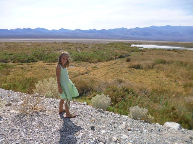Das Schild markiert das Meeresspiegelniveau. Die Vorstellung, sich am Grund eines 85 Meter tiefen Sees zu befinden, erschien uns faszinierend. Zurück am Auto gab es erstmal reichlich zu trinken und ein kleines Vesper. Danach ging die Fahrt auch schon weiter. Nach einem kurzen Abstecher zum Natural Bridge Trail ging es vorbei am Devil`s Golf Course zum Furnace Creek – zu Deutsch: Schmelzofen Bach.