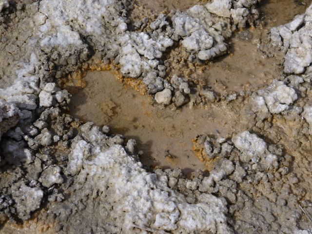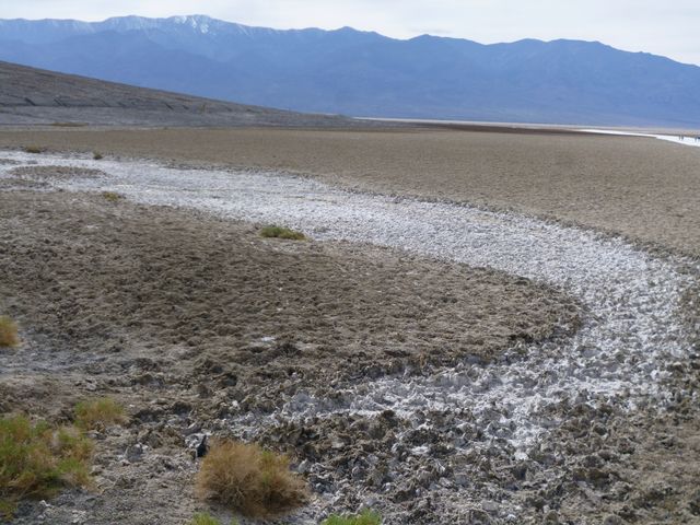 …doch das meiste Wasser verdunstet. Die Verdunstungsrate liegt bei 3800 mm. Das bedeutet: Ein See mit 3,8 Metern Tiefe würde binnen eines Jahres komplett austrocknen! Zurück bleibt eine mittlerweile meterdicke Salzkruste mit beachtlicher Ausdehnung.