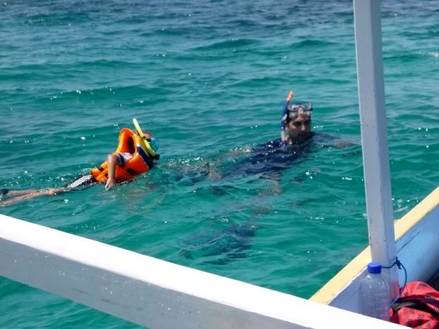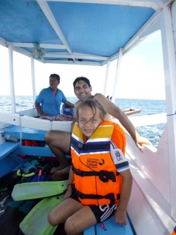 An einem Tag haben wir eine Bootsrundfahrt an verschiedene vorgelagerte Riffe gebucht. Da wir die einzigen Passagiere waren, konnten wir nach Lust und Laune Schnorcheln.