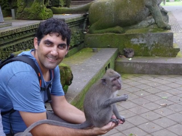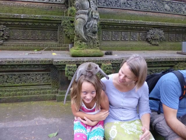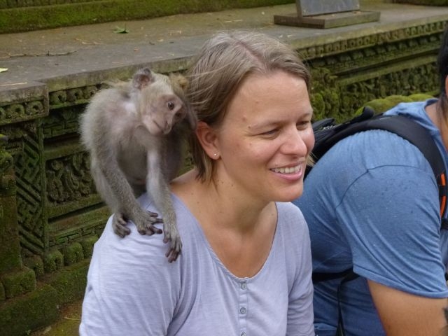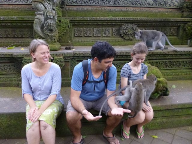 Weniger mystisch ging es am nächsten Tag in den Monkey Forest. Ein Wald, samt Tempelanlage wurden einer Makaken Affenbande gewidmet…ohne Gitter, Zaun und doppelten Boden werden die ahnungslosen Touristen auf die cleveren Burschen losgelassen. Die dreisten Gesellen machen schnell klar: Wer Essbares in seinen Taschen versteckt oder gar eine Plastiktüte mit verdächtigem Inhalt mit sich trägt, bekommt Besuch. Manchmal muss auch einen Sonnenbrille daran glauben. Hat sie den Geschmackstest nicht bestanden, wird sie in irgendeinem Baumwipfel eingehend auf Bruchfestigkeit und Zähigkeit geprüft. Und dennoch, trotz der Hinterhältigkeit und Gerissenheit kann man sich dem Charme der kleinen Primaten kaum entziehen und so genossen wir den Tag im Affenzirkus.