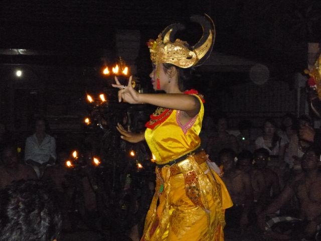 Der Regen hielt nicht ewig an und so konnten wir uns zu vorgerückter Stunde noch einen Kecak Fire Dance in einer Tempelanlage unter freiem Himmel anschauen. Bezaubernde Tänzerinnen in hinreisenden Kostümen, der hypnotisierender Gesang und das exotische Ambiente zogen uns in ihren Bann.