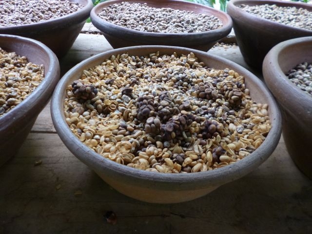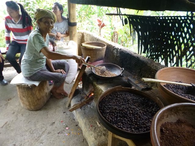 Nach diesem kulturellen Intermezzo ging es weiter Richtung Norden zu einer Kaffeeplantage. Hier gibt es den teuersten Kaffee der Welt. Der Kopi Luwak Kaffee steht am Ende eines komplexen Fertigungsprozesses. Im Mittelpunkt steht dabei die Schleichkatzenart Fleckenmusang. Sie ernähren sich mit Vorliebe von reifen Kaffeekirschen. Zielsicher verspeisen sie hierbei lediglich die besten Früchte. Die unverdaulichen Kerne – gemeinhin als Kaffeebohne bekannt – werden wieder ausgeschieden und durchlaufen dabei im Verdauungstrakt einen einzigartigen Fermentierungsprozess. Die Exkremente werden gesammelt und mit großem Aufwand gereinigt, geröstet und für rund 300 € fürs Kilo auf den Markt gebracht…manche machen auch aus Scheiße Gold . Übrigens, der Kaffee schmeckt mild und fein und ist säurearm.