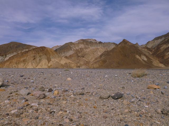 Wir verweilten nur kurz, denn bis zu unserem nächsten Ziel war es nicht mehr weit. Die Flora der Tiefebene wich zusehends ausgedehnten Geröllfeldern und Salzpfannen. Noch immer ging es sanft bergab, bis wir schließlich tatsächlich am tiefsten Punkt des Tales angelangten – dem Badwater Basin.