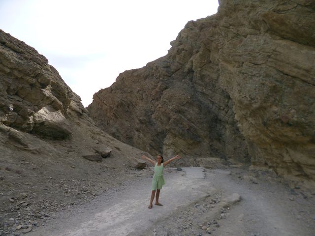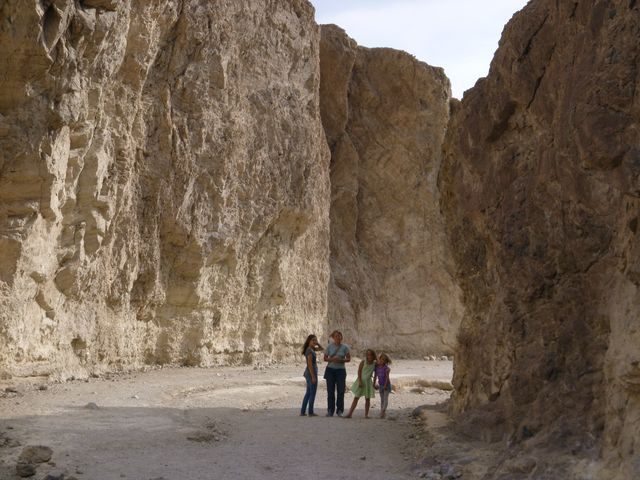Das Schild markiert das Meeresspiegelniveau. Die Vorstellung, sich am Grund eines 85 Meter tiefen Sees zu befinden, erschien uns faszinierend. Zurück am Auto gab es erstmal reichlich zu trinken und ein kleines Vesper. Danach ging die Fahrt auch schon weiter. Nach einem kurzen Abstecher zum Natural Bridge Trail ging es vorbei am Devil`s Golf Course zum Furnace Creek – zu Deutsch: Schmelzofen Bach.