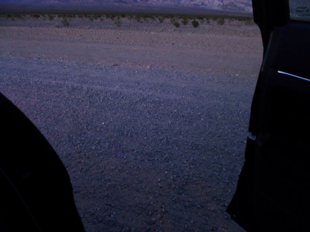 Die Schatten wurden zunehmend länger und mit dem Sonnenuntergang nahmen wir Abschied vom Death Valley. Zurück auf dem Highway gab es dann doch noch eine Überraschung. Der Asphalt wich nach einigen Meilen einer Schotterpiste ohne Markierungen, Fahrbahnbegrenzung oder ähnlichem…